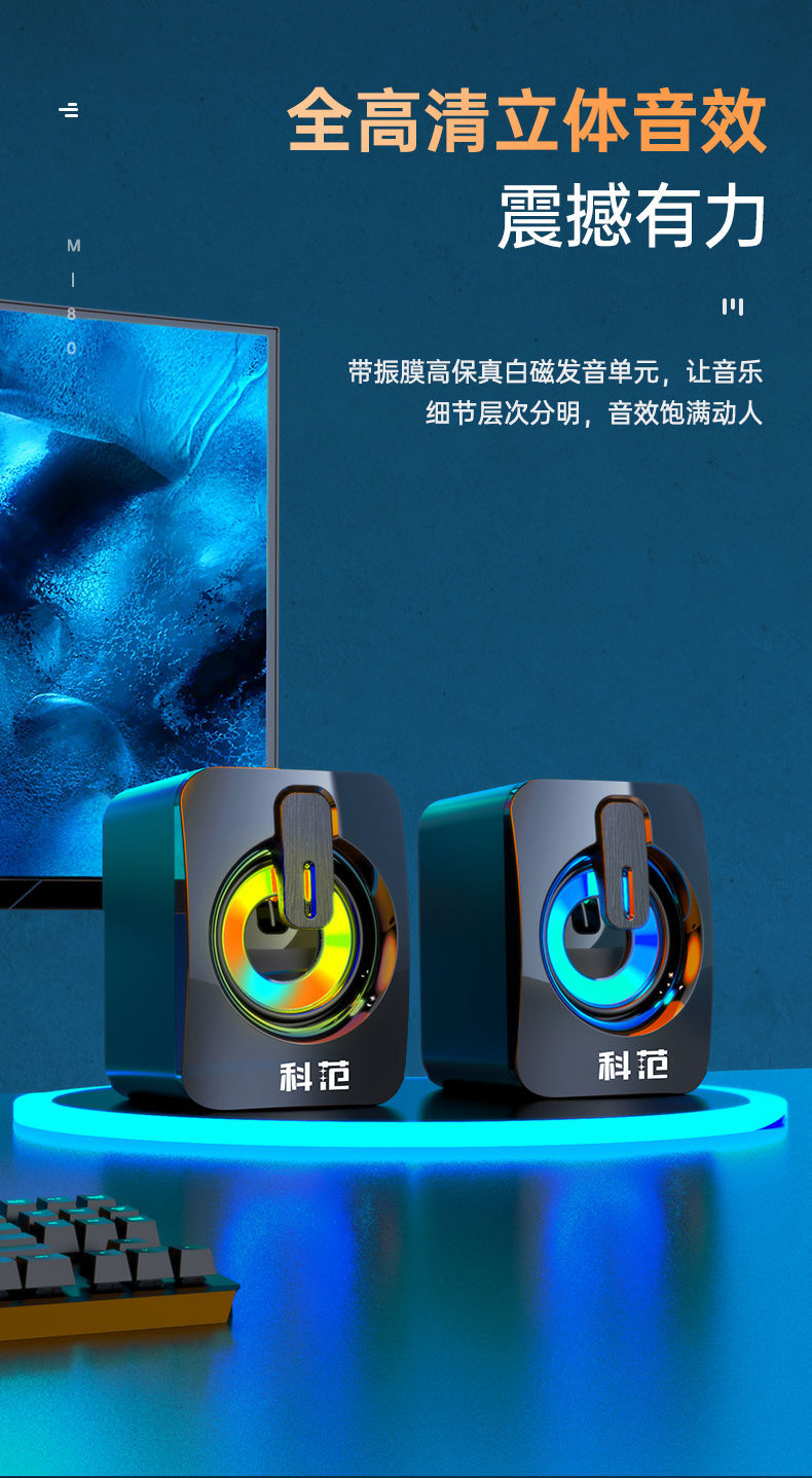 科范M80电脑音响台式小音箱家用笔记本台式机usb有线迷你喇叭灯光