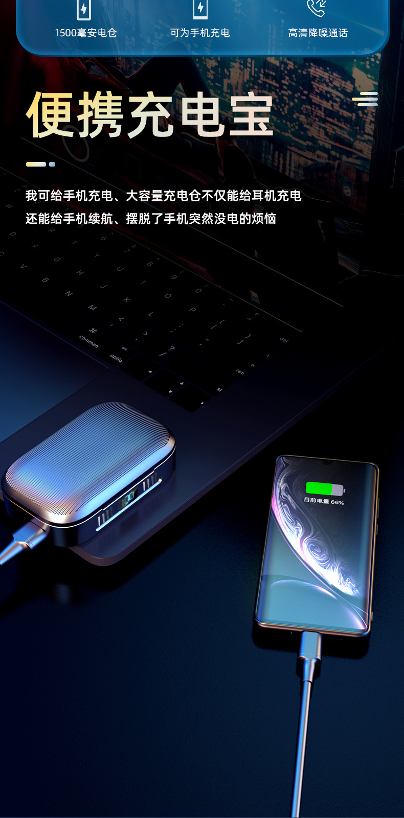 新款208无线耳机带充电仓充电真数显耳塞式双边立体声运动防水
