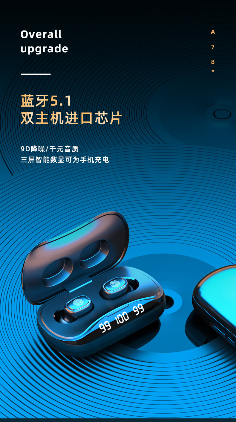 TWS-210s 蓝牙耳机双耳触摸立体声5.1无线带充电宝充电