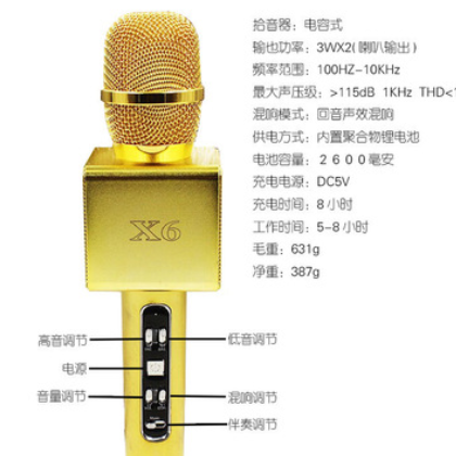 X6正品金属手机麦克风无线蓝牙唱吧K歌宝直播话筒电脑电视全民K歌