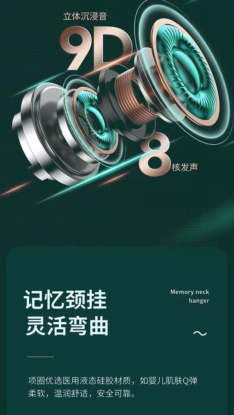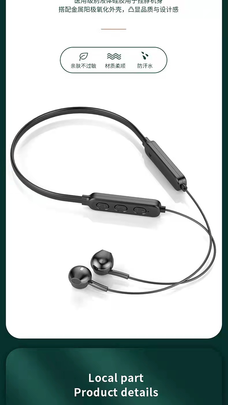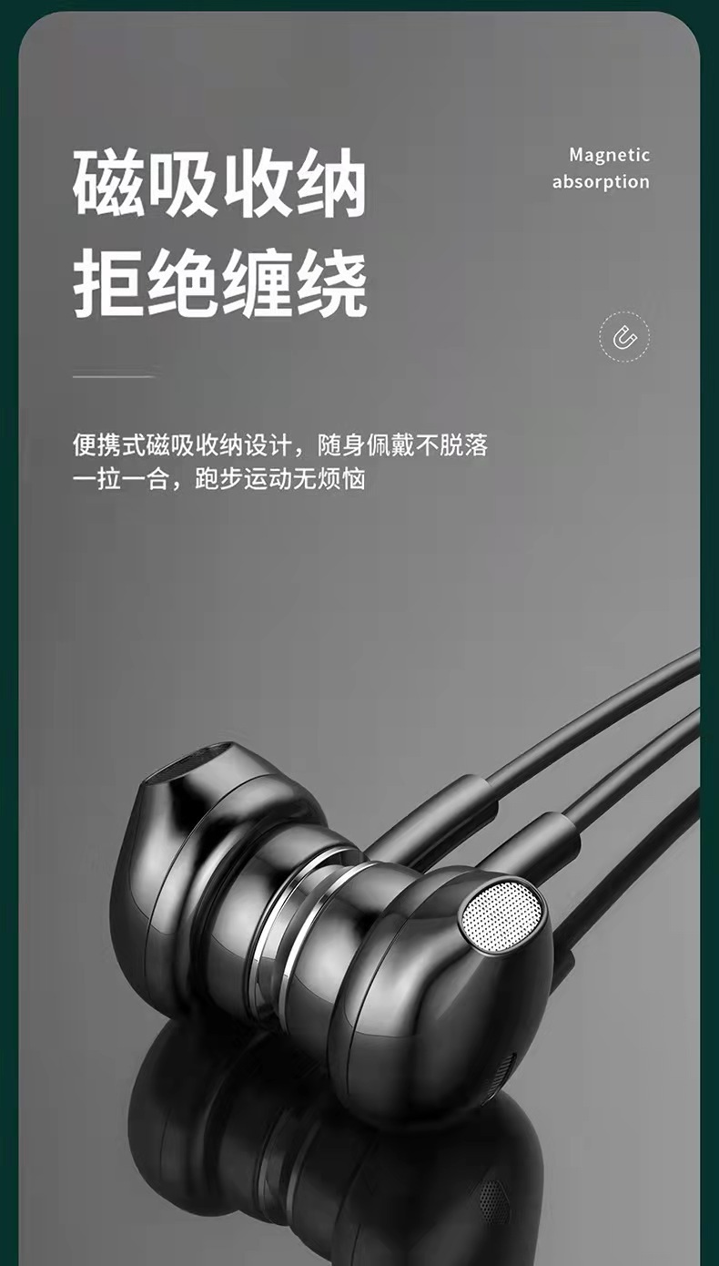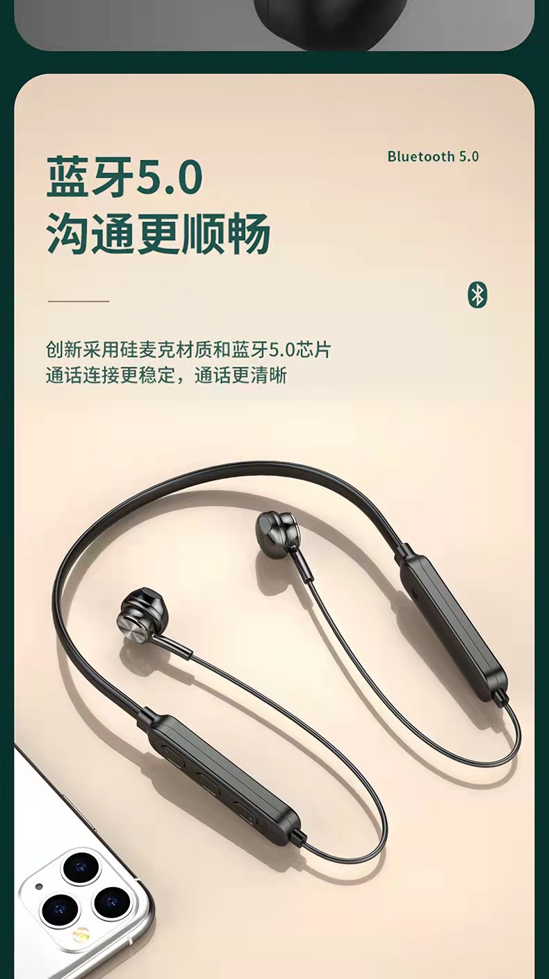 新款挂脖蓝牙耳机半入耳重低音颈挂式磁吸运动跑步耳机适用于手机