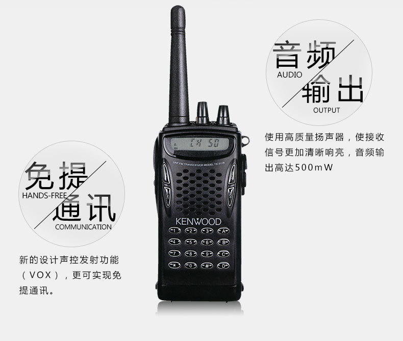 信道容量: 50个单工信道, 键盘夜光照明,信息传呼