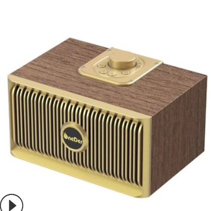 OneDer V5复古木质重低音炮音响 无线插卡蓝牙音箱礼品可旋转按钮