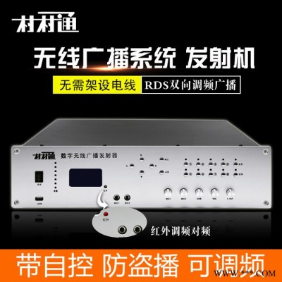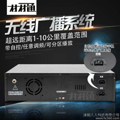 沭阳人人科技有限公司生产的村村通数字式无线广播系统:无线广播发射机RDS带遥控改频、抗干扰、防盗播,接收机可以和发射机自由对频,可任意调节频率与分组信息,智能全中文高清显示器,简单易用;内置USB直接播放,支持拓展电脑、DVD播放、电话主机、IP网络主机远程控制。打开电源无线广播发射机自动打开接收机。专业级广播音效,更安全,更稳定!无线广播适用于:新农村、山村、旅游景点、驾校、学校、工厂企业、矿区、农场、广场、小区、公园背景广播、监狱等,覆盖范围5-10公里,使用范围广泛。