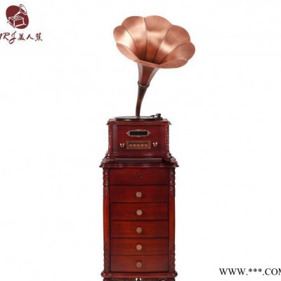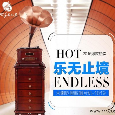 【美人蕉】留声机1819仿古电唱机 复古LP大喇叭黑胶唱片机