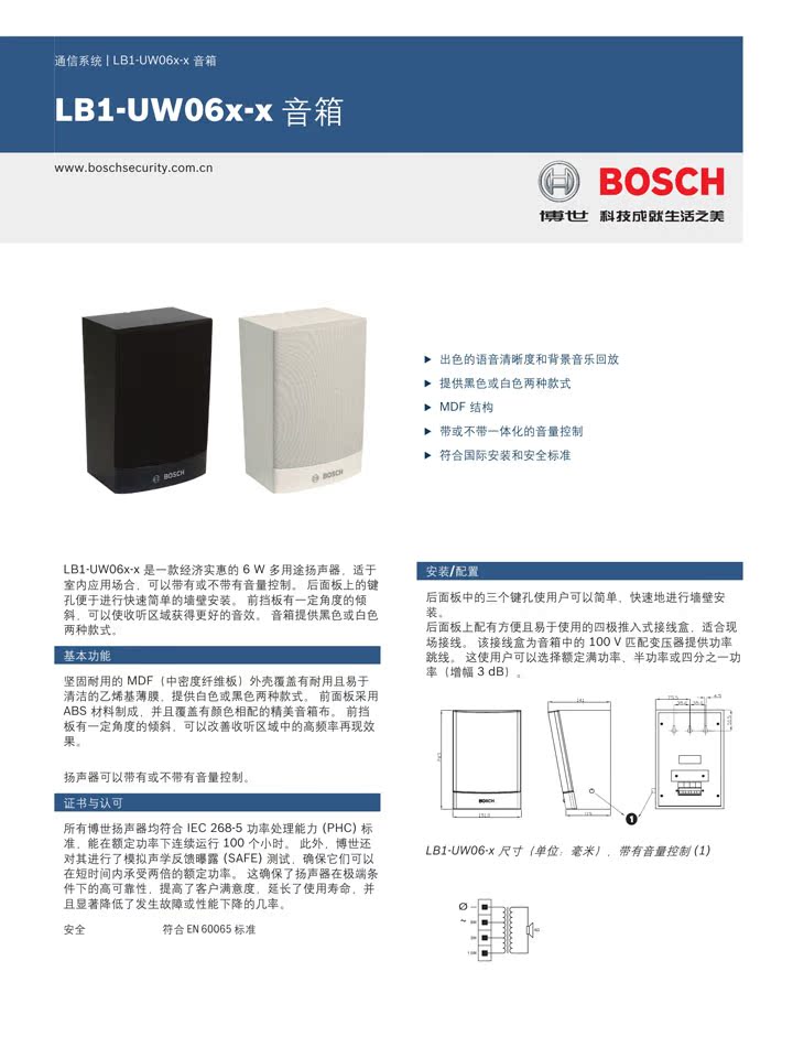 BOSCH 博世 音箱 扬声器 广播 壁挂 音响 LB1-UW06-D 黑 原装