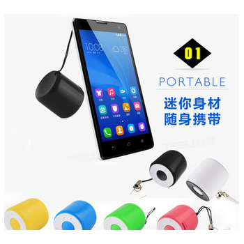 工厂批发带自拍器音箱迷你低音炮便携式手机挂绳蓝牙音箱圆柱形