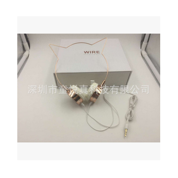 2017猫耳朵耳机国内外爆款中性包装礼品外贸现货头戴式玫瑰金电镀