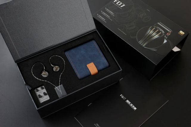 在电商上售价99元的HB5收纳盒也作为FD7的标配。压变皮革的纹理自然有质感,走线规整,FiiO铭牌是点睛设计,整体档次感不俗。我很喜欢它黄蓝撞色的色彩搭配,醒目不艳俗。磁吸式皮带卡扣,开合手感很不错。内部的水晶超柔面料和天鹅绒里料,加上可拆卸隔条,不但能给放置其中的耳机以更好地保护,还能灵活组合各个物品的摆放位置。此外MMCX快拆辅助器、清洁刷、磁吸线夹等实用小配件也是FD7配件中的一员。
