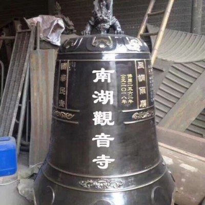 铜钟,铜为黄铜或青铜,铜钟表面更为精细精美,声音宏亮,古朴大方,不用跟铁钟一样反复的喷漆影响香炉本身的光泽度,可直接作成铜本色,洗古铜色,青铜色。寺院可长时间放于露天下,为寺院增添一份庄严雄伟的气息。另可按贵方要求在香炉上刻寺院名称,功德主芳名,佛历道历等日期