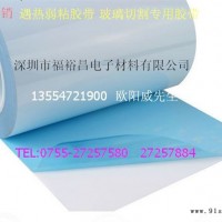 【产品介绍】 | 福裕昌公司自主研发和生产热剥离薄膜,又名发泡胶、定位切割膜等。填补了国内空白,热剥离膜是由一种特制的粘合胶制成,在常温下具有一定的粘合力,只要加热到设定的温度,粘合力即消失,能实现简易剥离、不留残胶、不污染被粘物。在贴片电子元器件、精密零配件等产品生产过程中实现自动化、节省人力、物力,提高效益**。本实用新型提供的一种高温热解粘压敏胶保护膜,包括原膜和离型膜,所述的原膜采用聚酯薄膜,原膜为外涂层型抗静电原膜,聚酯薄膜的上下两层均涂有外涂层,外涂层的厚度为1-5um,原膜和离型膜之间为高温热解粘压敏胶黏层,胶黏层涂布在聚酯薄膜上,胶黏层的压敏胶中添加有微球膨胀剂,本实用新型选择利用膨胀剂来实现热解粘压敏胶这个构思,为克服压敏胶可在高温下使用的条件,我们突破传统以反向思考,研发出热解粘压敏胶-一种在遇高温会自动降低黏性甚至失去黏性的压敏胶,解决压敏胶在高温应用下的残胶问题。 使用说明: 在常温下有一定的粘性,可起定位作用,满足了精密加工的要求。待加工完毕,只需加热到设定温度3-5分钟,粘性自动消失,实现简单快捷玻璃(注意:温度必须达到设定温度时方可放入产品进行发泡,其效果**) |